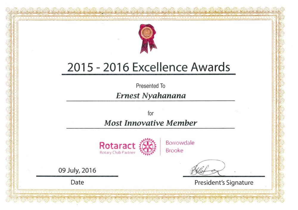 Whilst working in collaboration with fellow club members, I undertook many voluntary activities that were beneficial to our adopted Hatcliffe community in line with Rotary International’s global effort to bring peace and international understanding to the world in a nonreligious, non-political and non-profit manner. Amongst the activities that I was actively involved in were Breast Cancer Awareness campaigns, Clean up drives, Blood drives, Spelling Bee competitions and more. As a result of some of the efforts in the club, I was humbled to be recognised by fellow club members and awarded Most Innovative Member 2016, Service Above Self Award 2017 and a number of Sponsor Appreciation Awards.